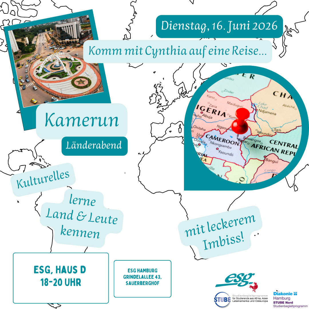 ESG Sauerberghof Haus D Grindelallee 43, Hamburg, Hamburg, DeutschlandWir kochen zusammen mit dem kochenden Pastor Maurício da Silva Carvalho und unterhalten uns über Frieden und alles, was die Welt gerade so bewegt. Bitte meldet euch an!
