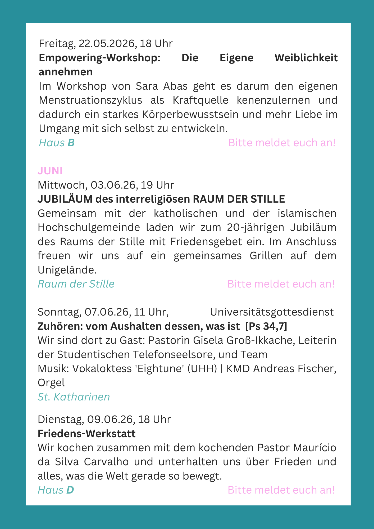Semesterprogramm SoSe 26: Semesterprogramm 2026
